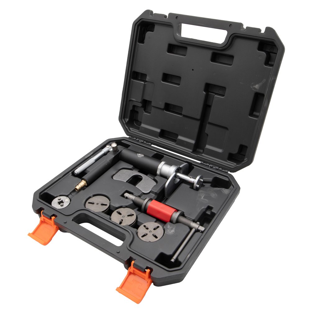 Универсалният комплект за връщане на спирачни бутала е цялостно решение за поддръжка на автомобилни спирачки. С този комплект от 8 части, връщането на спирачните бутала става лесен и безавариен процес. Този комплект е от съществено значение за поддръжка и смяна на спирачни накладки, осигурявайки гладък процес без необходимост от неправилна употреба на други инструменти. Шпинделът е изработен от специална стомана, което гарантира издръжливост и надеждност.