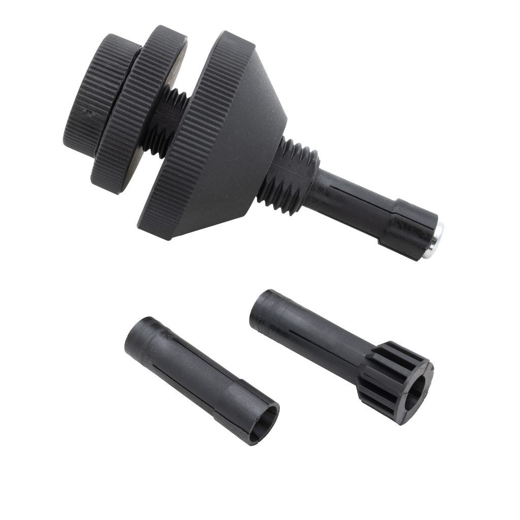 Изработен от здрави найлонови компоненти и солиден стоманен главен цилиндър, инструментът разполага с три различни размера разширяеми втулки, които пасват на широк спектър от превозни средства до 5 тона общо тегло. Идеален за леки автомобили и ванове, той улеснява прецизното центриране дори на маховици без лагерни втулки и покрива 90% от моделите на пазара.