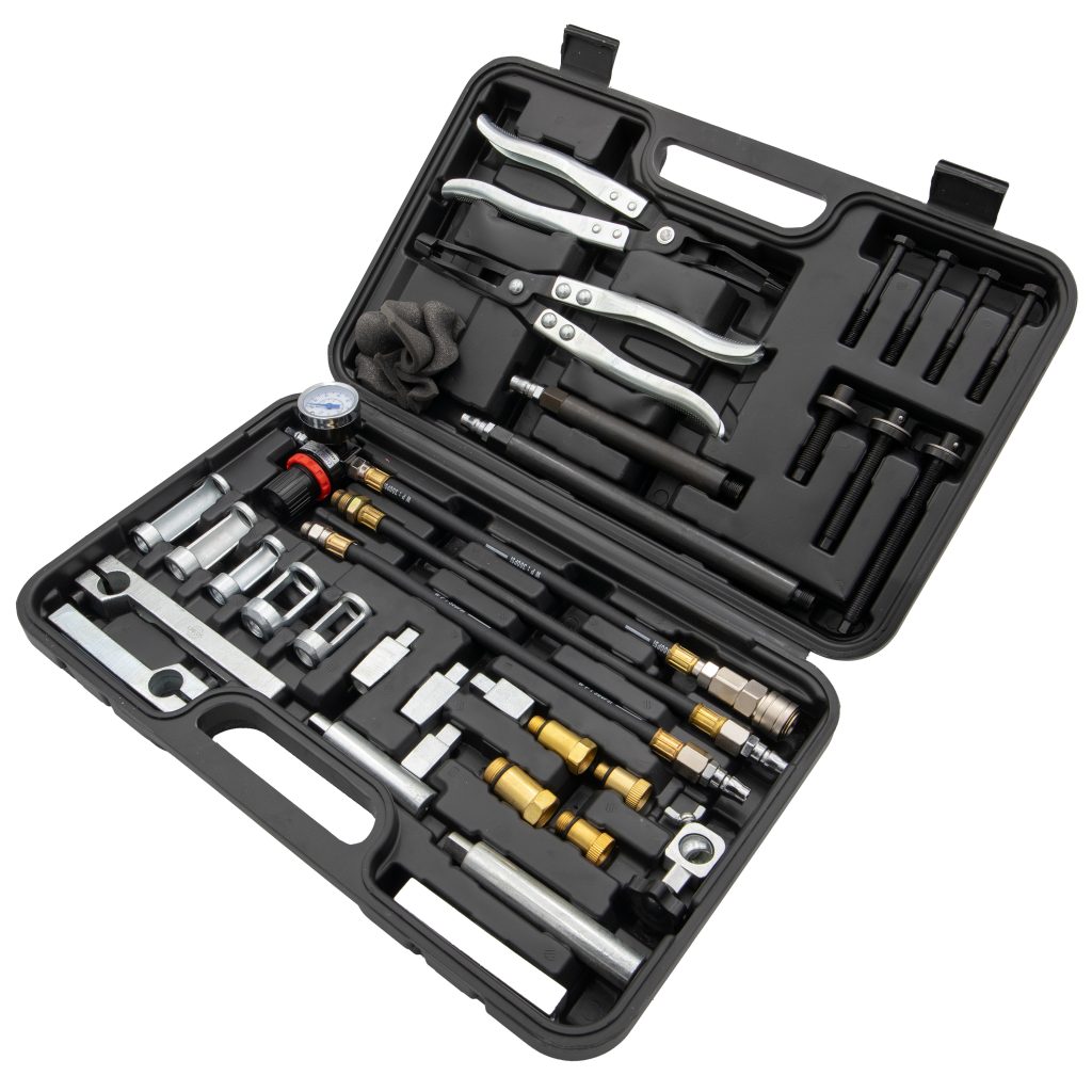 Този универсален комплект за демонтаж и монтаж на клапанни пружини позволява бърза и ефективна смяна на клапанни пружини и уплътнения на клапанните стъбла без необходимост от сваляне на цилиндровата глава или гарнитурата.