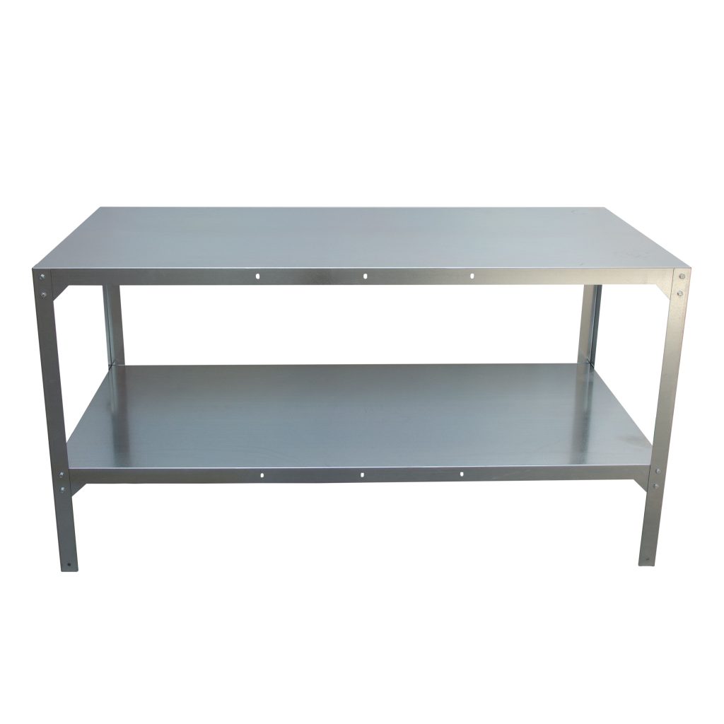 Тази универсална, метална, поцинкована работна маса е отличен избор за работа в складове и работилници. Благодарение на здравата и издръжлива конструкция, тя осигурява дълъг живот и надеждност. Просторният плот, укрепеният рафт и високата носимоспособност позволяват ефективна работа и подредено съхранение на инструменти и материали.
