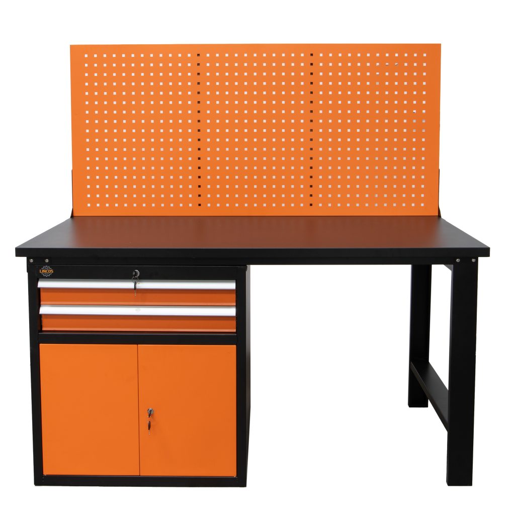 Работната маса с перфорация, два чекмеджета и заключващ се шкаф е практично и издръжливо решение за всеки гараж, работилница или хоби стая. Тя предлага достатъчно работно пространство, като същевременно държи инструментите и материалите подредени и лесно достъпни.