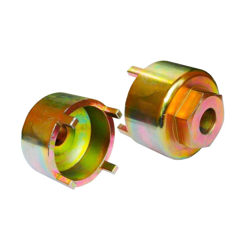 Специален ключ за монтаж и демонтаж на гайката на предната главина на превозни средства Iveco 35. Ключът е изработен от едно парче материал (не е лят) чрез механична обработка, след което е закален и галванизиран за осигуряване на висока издръжливост.